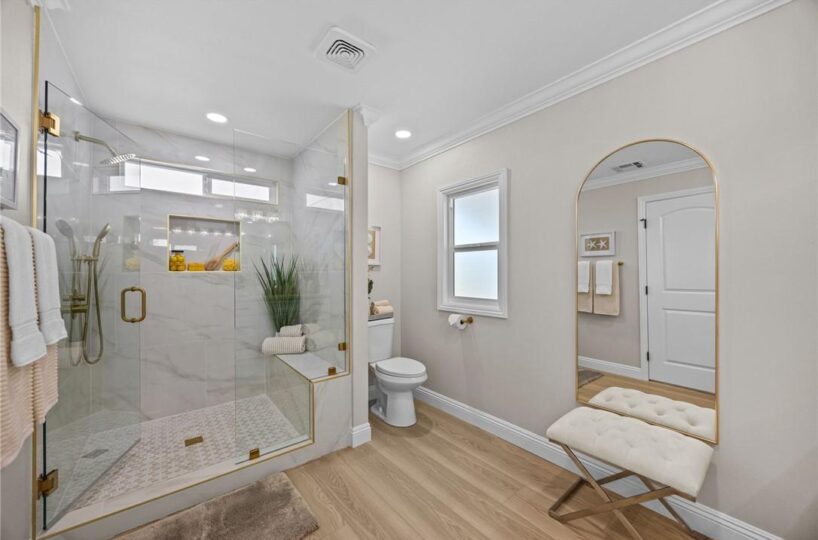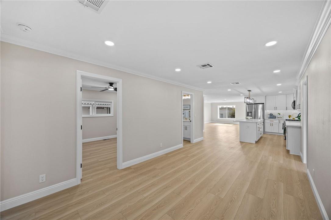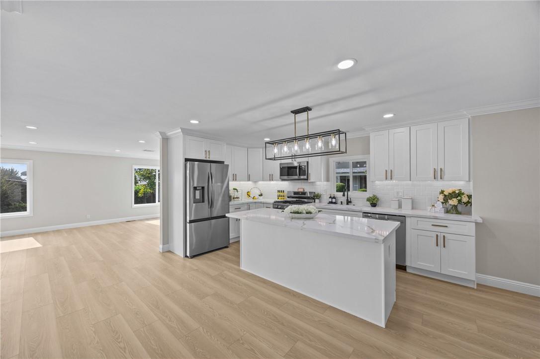This exceptional residence showcases a brand-new kitchen complete with an island, stainless-steel appliances, and a washer and dryer. Both bathrooms have been tastefully remodeled, and the home features recessed lighting, water-resistant flooring, fresh interior and exterior paint, and a newer roof backed by a 50-year warranty.