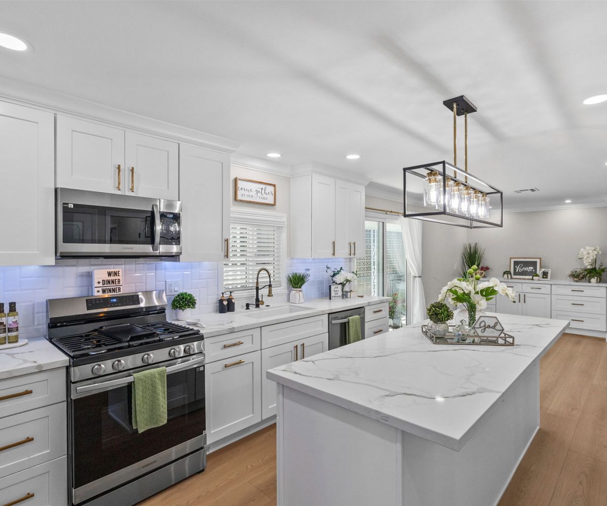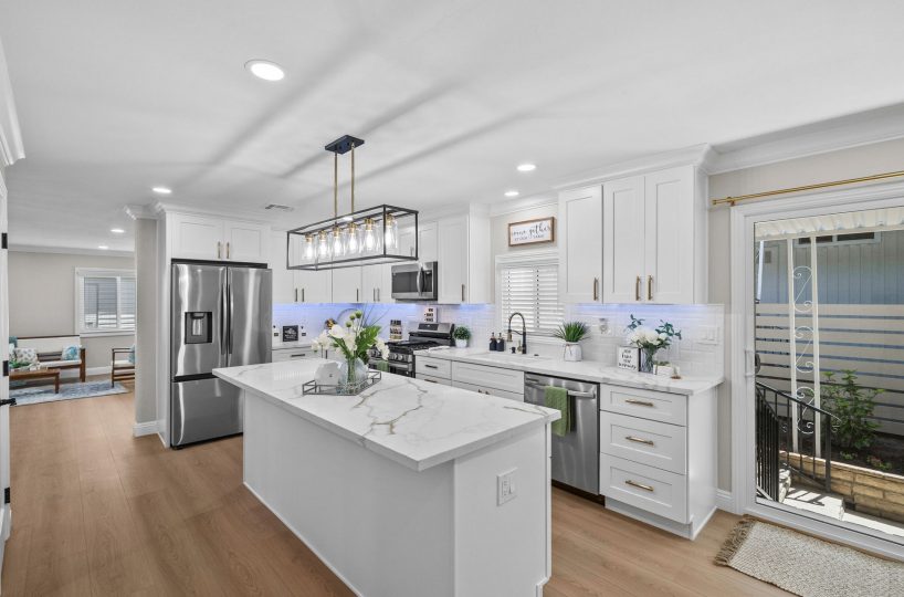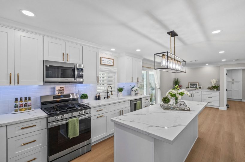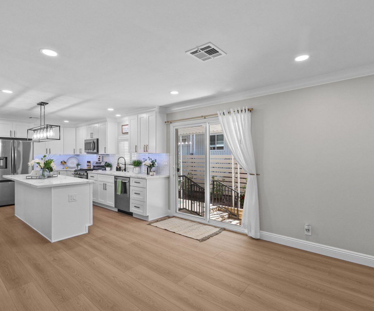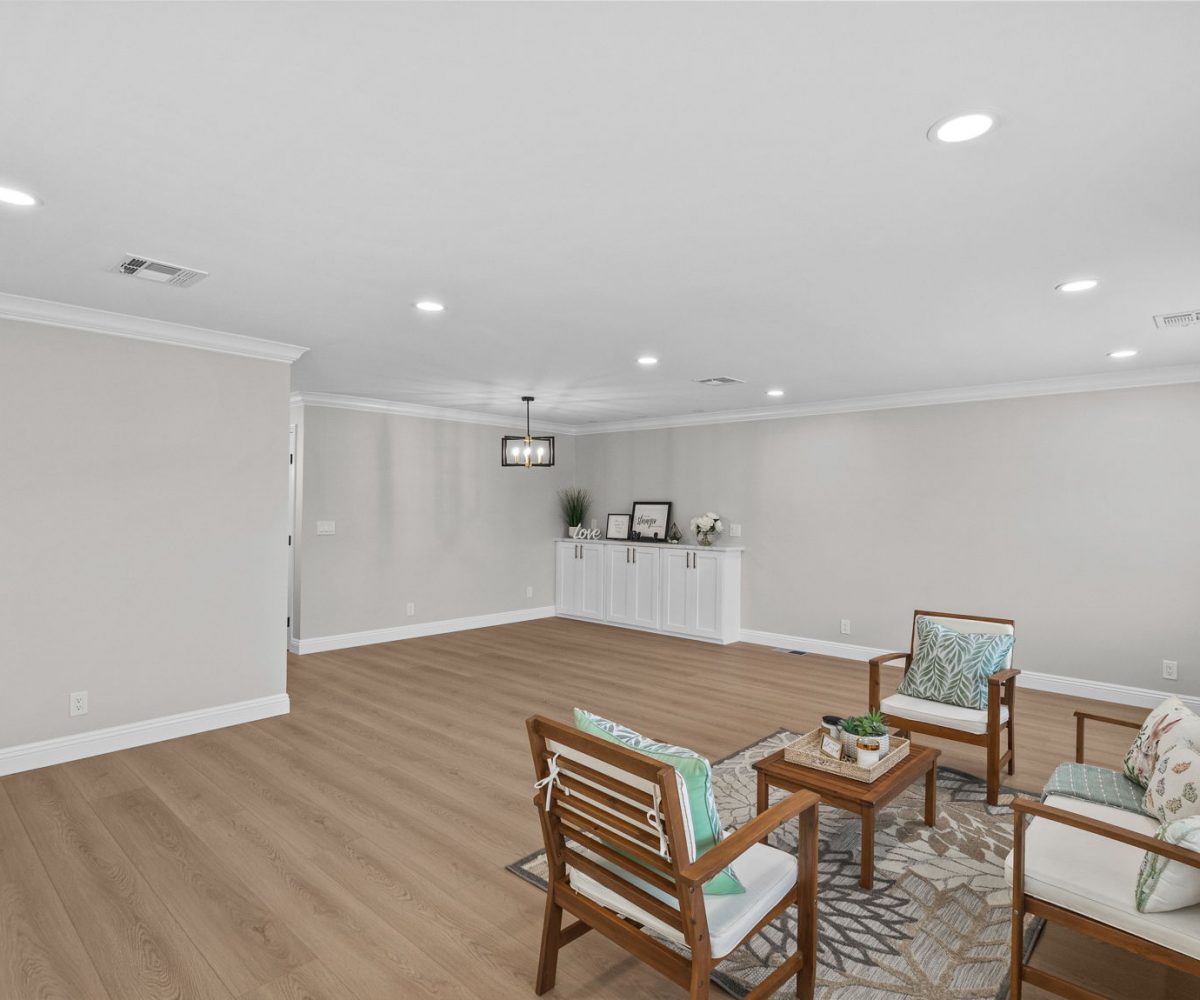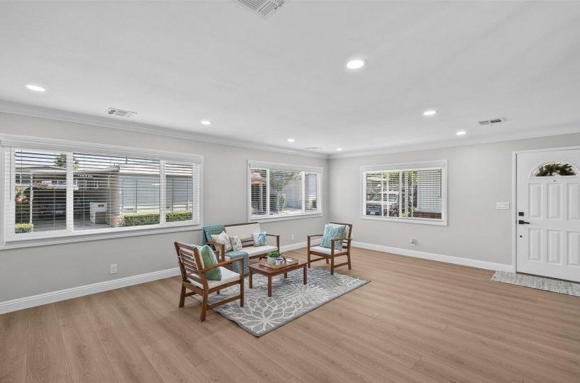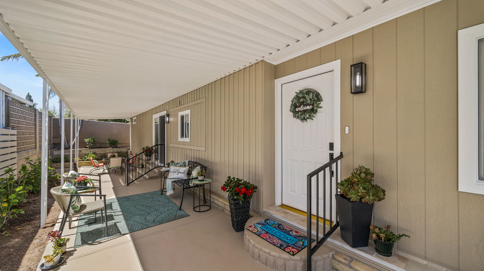 Senior Park Community 55+…This is the perfect opportunity to buy this REMODELED bright spacious 2 bed, 2 bath home with a GREAT LOCATION just inside the community. Just like New! Let’s enter this beautiful home from the east facing private patio. As we walk in, we are greeted by the open living room and dining room area that is bright and beautiful. The kitchen is around the corner, and it features quartz countertops, a large island, soft close doors and drawers, new appliances. The laundry area leads to the back door and another entrance for the guest bath to the left. There is a small den area off the kitchen that has another built-in for extra storage. The guest bedroom is off to the right and it has its own entrance to the guest bath. The primary is straight ahead having its own updated en-suite featuring a tile shower with a bench and double sinks. This home has new luxury vinyl laminate flooring throughout, partially new windows, new appliances, crown molding, recessed lighting, new roof, newer water heater, a/c, furnace and new washer and dryer. Everything is ready for you to move in today! With this home being updated from front to back, it will not last long on the market! Look no further, this is the home you have been looking for. Move in ready!