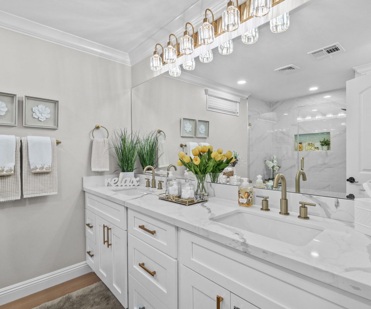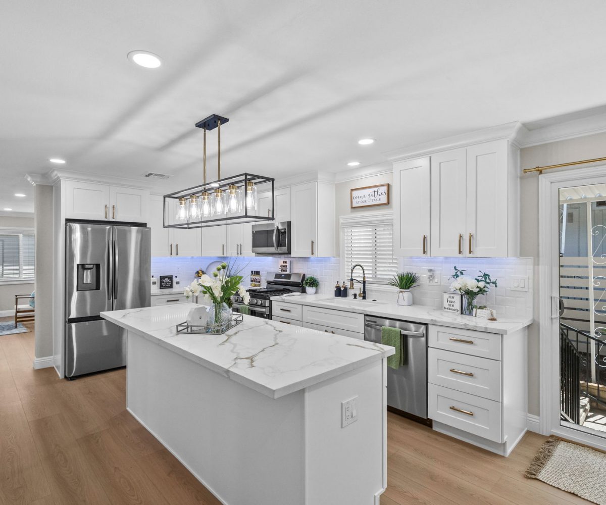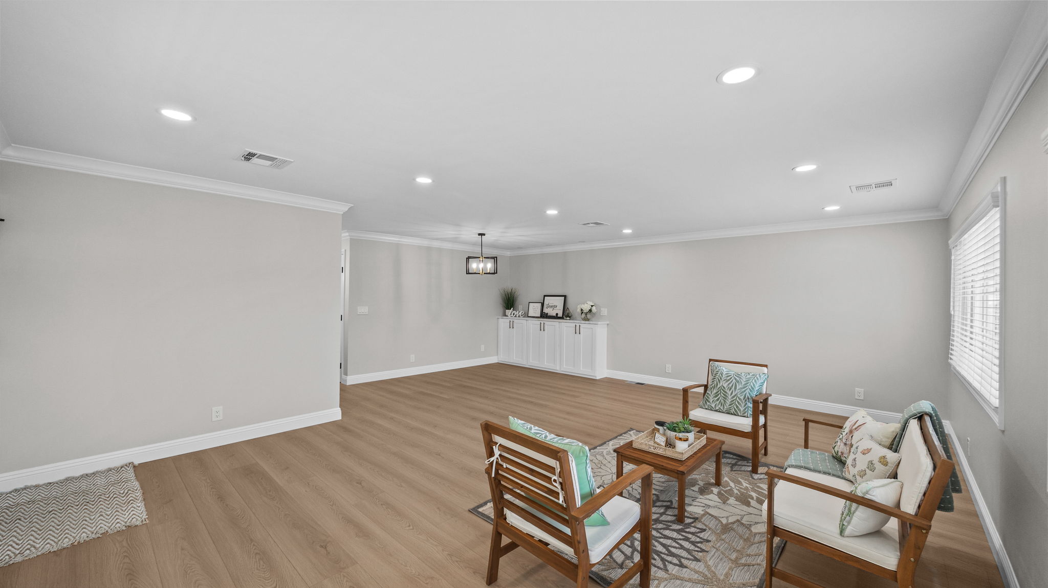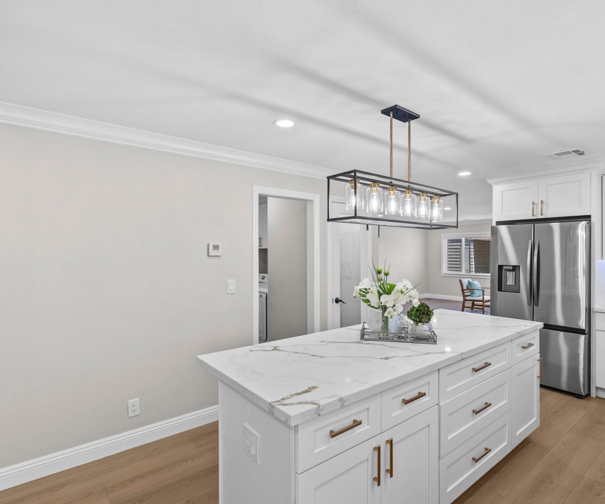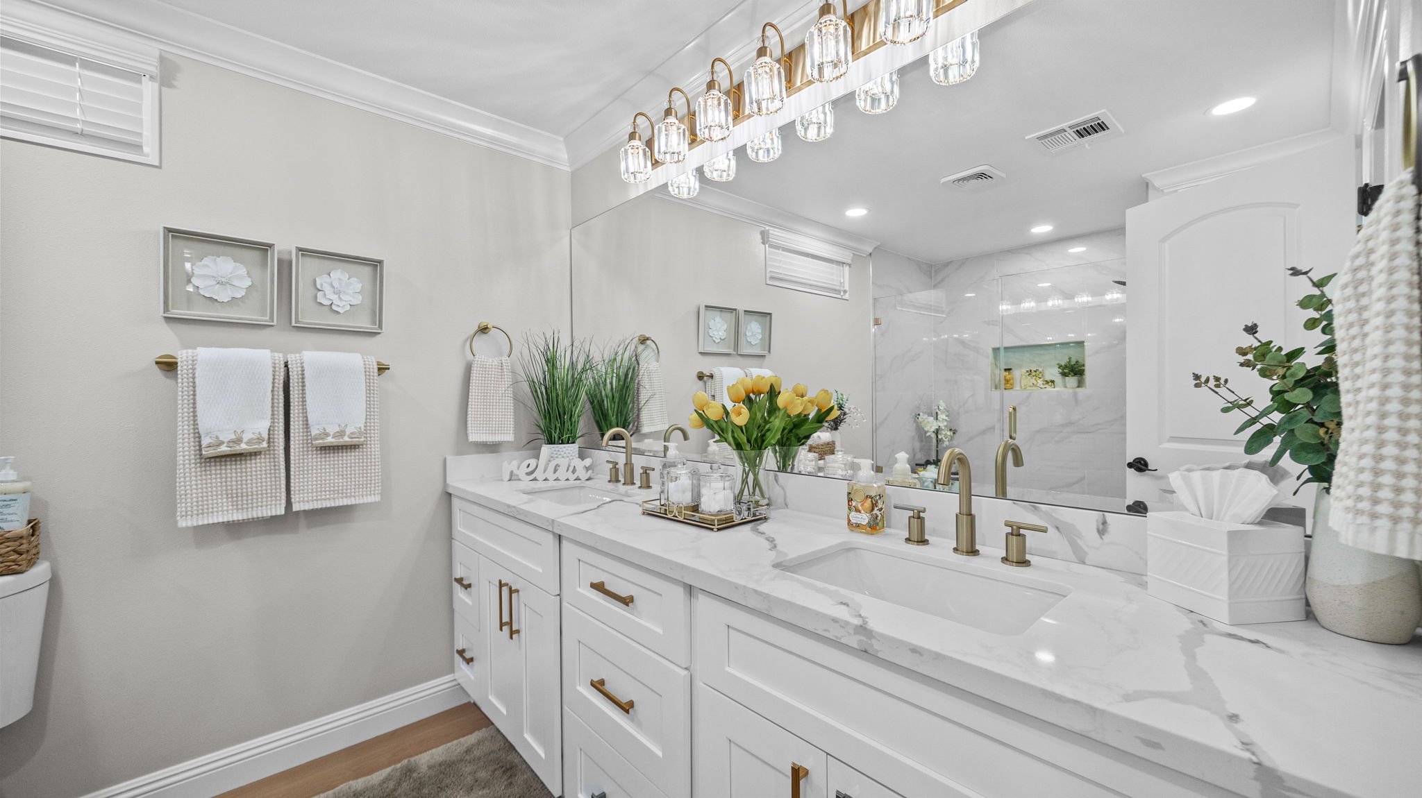 Senior Park Community 55+…This is the perfect opportunity to buy this REMODELED bright spacious 2 bed, 2 bath home with a GREAT LOCATION just inside the community. Just like New! Let’s enter this beautiful home from the east facing private patio. As we walk in, we are greeted by the open living room and dining room area that is bright and beautiful. The kitchen is around the corner, and it features quartz countertops, a large island, soft close doors and drawers, new appliances. The laundry area leads to the back door and another entrance for the guest bath to the left. There is a small den area off the kitchen that has another built-in for extra storage. The guest bedroom is off to the right and it has its own entrance to the guest bath. The primary is straight ahead having its own updated en-suite featuring a tile shower with a bench and double sinks. This home has new luxury vinyl laminate flooring throughout, partially new windows, new appliances, crown molding, recessed lighting, new roof, newer water heater, a/c, furnace and new washer and dryer. Everything is ready for you to move in today! With this home being updated from front to back, it will not last long on the market! Look no further, this is the home you have been looking for. Move in ready!