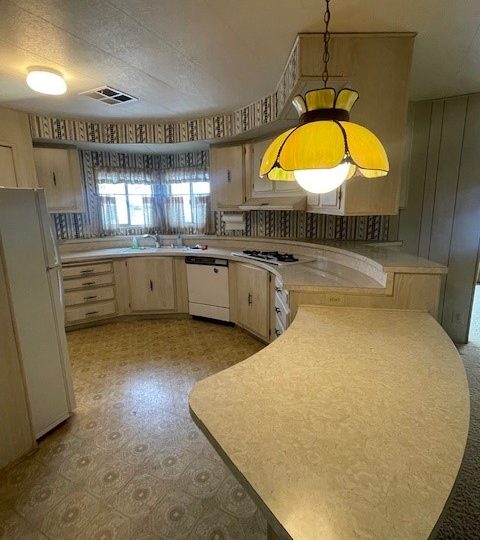 Senior park Community 55+…Discover the potential of this delightful 2-bedroom, 2-bathroom home nestled in a desirable 55+ community. This spacious home offers 1650 square foot of living space providing a perfect canvas for those looking to infuse their personal style through cosmetic updates. This home features a large living area, large formal living area, spacious bedrooms with a large walk in closet. The master bath comes with a large soaking tub, double vanity and a walk in shower. The kitchen, with plenty of cabinet space, is ready for a refresh to become the focal point of the home. Located across the street you will find the popular Soboba Casino, championship golf course and plenty of restaurants to choose from. Join in on the fun activities and events sponsored by the resident’s association. This property is a fantastic opportunity for those looking to customize their next home in a supportive and active senior community.