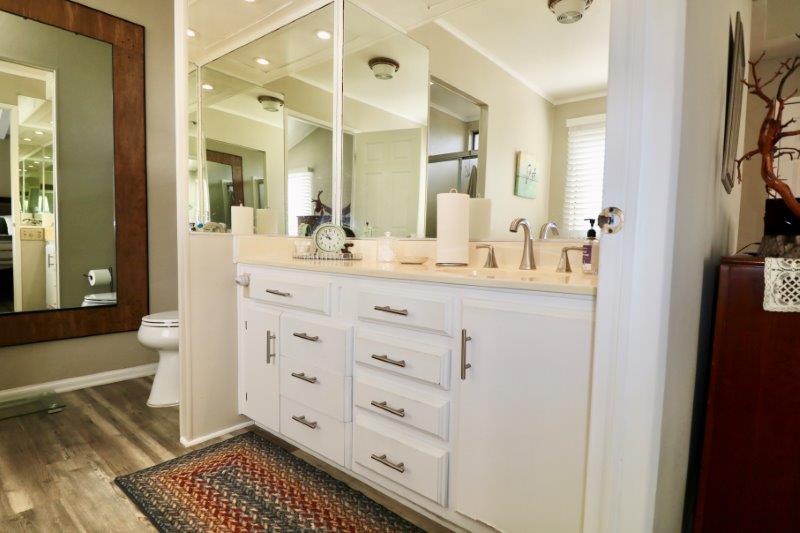 Senior Living 55 +..Welcome Home! Charming 2 bedroom and 2 bath, this cozy gem boasts a sweet breakfast nook perfect for morning coffee, a spacious master suite with a large walk-in closet, the master bathroom has the perfect soaking tub. The spacious living room with vaulted beamed ceiling features large window which allows for plenty of light, vinyl flooring through the home. Laundry room with utility sink, washer and dryer. Beautiful and inviting open patio with a gorgeous view that sits right off the of greenbelt. The home is a must see! Comes with 2 car attached garage with remote access. You can carry your groceries straight into the kitchen from your private parking space. The community offers a beautiful pool and spa for residents to enjoy, there is an exercise room, library and billiard room. Reserve the clubhouse for your special events and enjoy what Lake park has to offer. If you’re looking for charm and comfort, this one has it all! Don’t miss out!