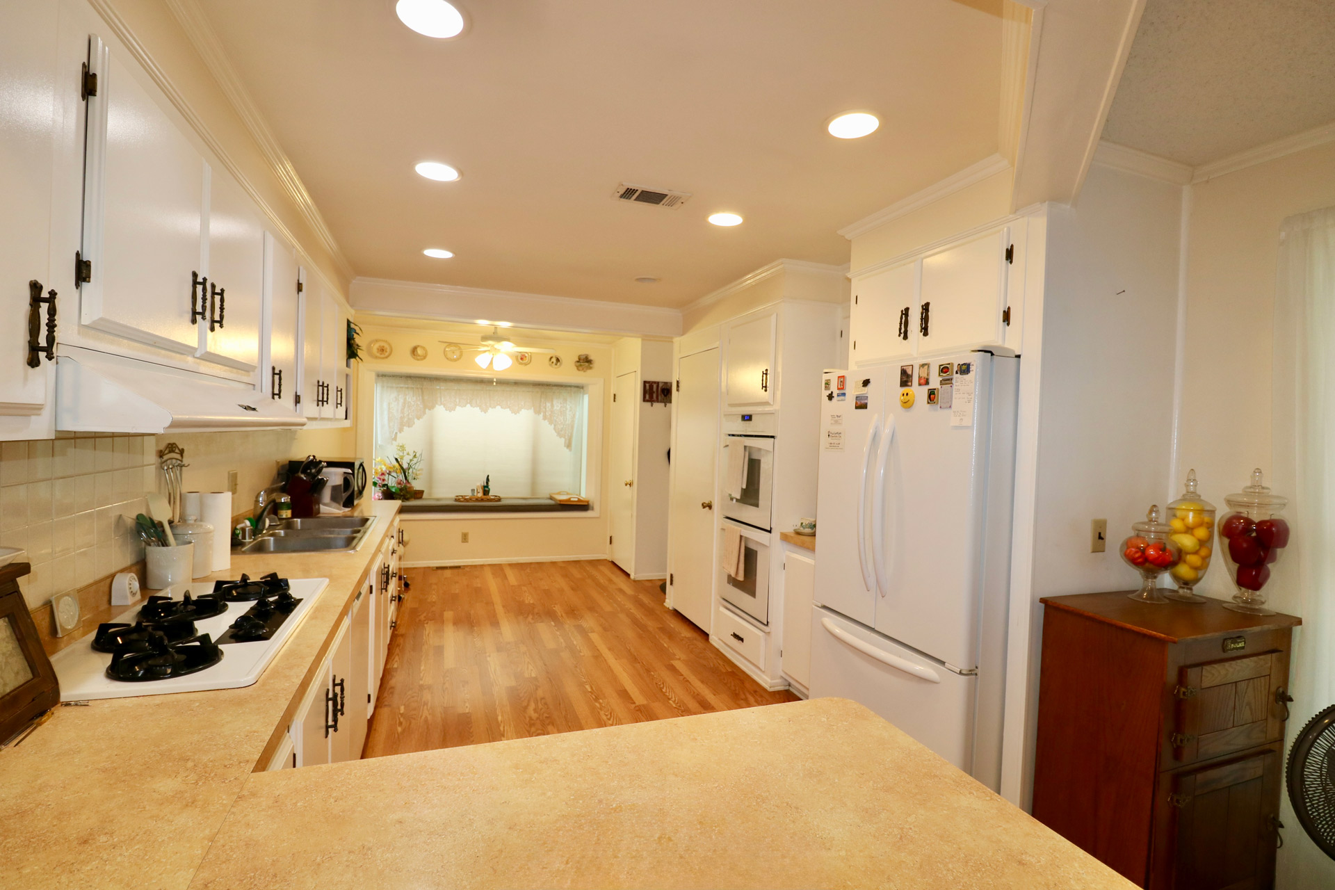 Vaulted beam ceilings enhance the expansive living and dining areas, creating an inviting space ideal for entertaining or relaxing. A versatile cozy den offers the perfect setting for a home office, reading room, or hobby space. Sliding glass doors lead to a private patio and generously sized yard, ideal for gardening, enjoying the outdoors, or accommodating pets.