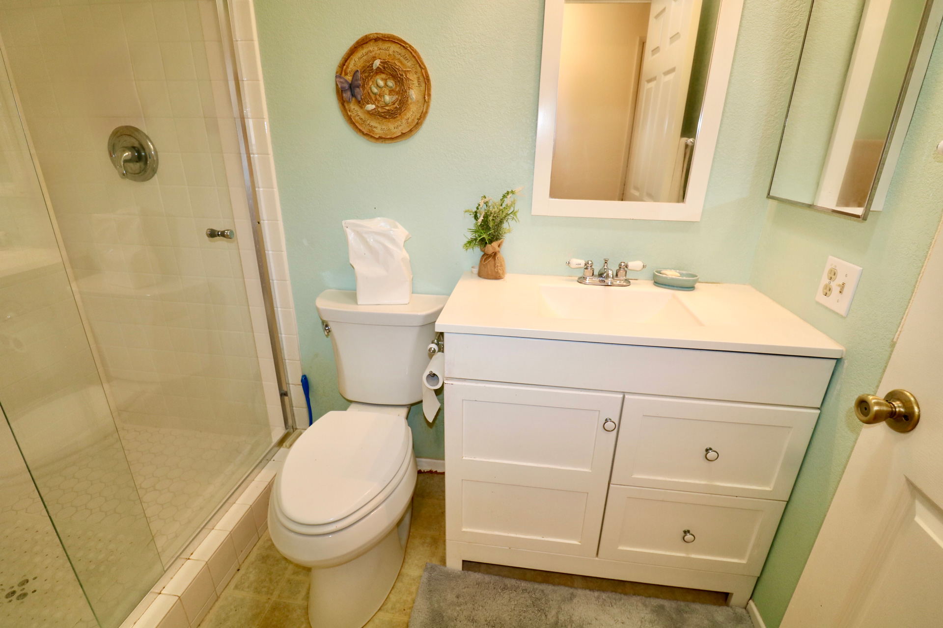 The home also includes an attached two-car garage with remote access and ample storage, adding everyday convenience. Nestled in a peaceful, park-like setting just steps from the greenbelt, this location offers tranquility while remaining close to community amenities.
